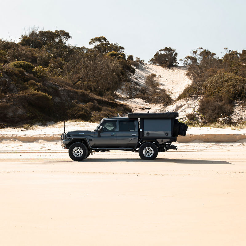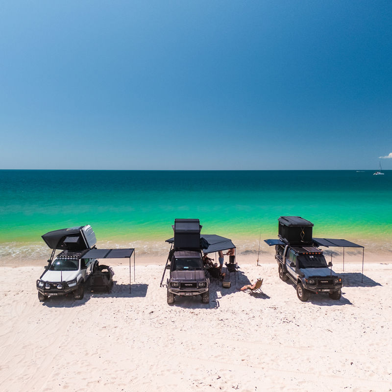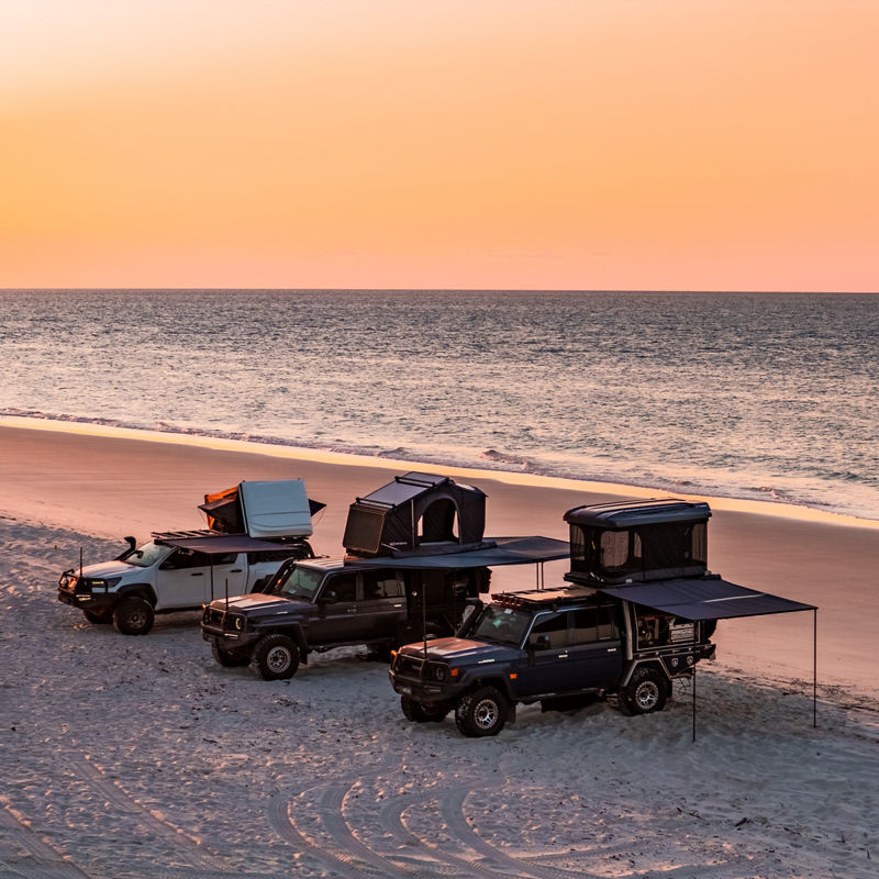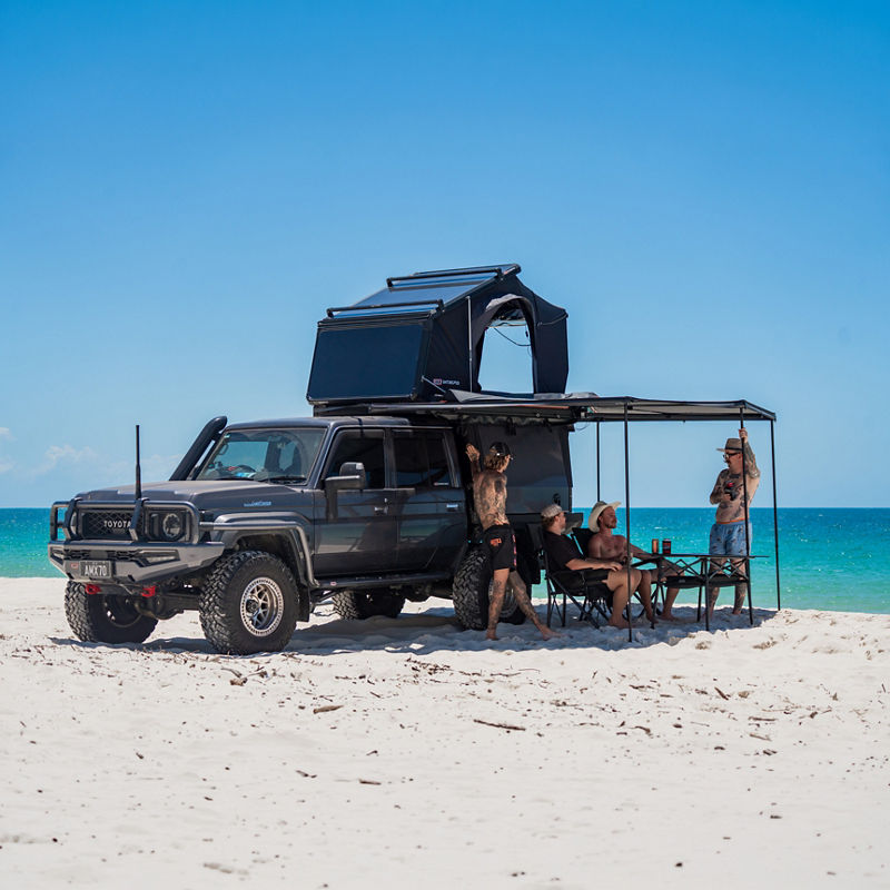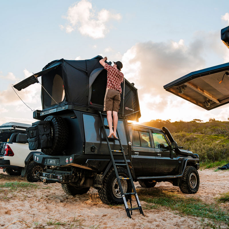 Geometry in Motion. By re-thinking the way a rooftop tent ought to function, the incredible amount of extra space provided by it’s proprietary bi-fold roof design elevates the camping experience by adding another level to your campsite. Sleep either end to suit the environment, get changed with ease or use the sheltered space as a chill out zone in unfavorable weather, the useable space in the ARB Intrepid feels more like a roof based camper than a tent.