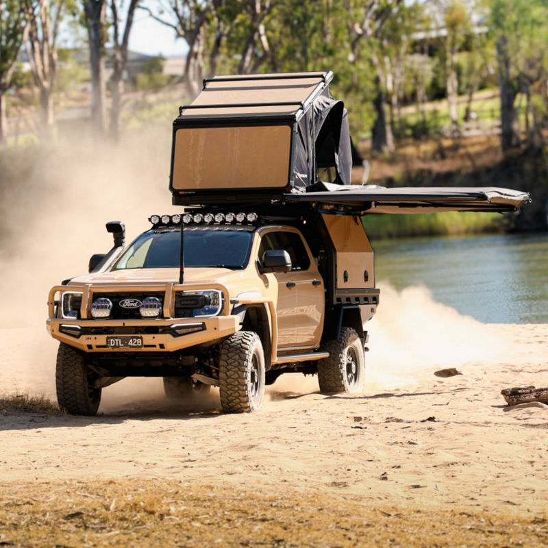 The ARB Intrepid rooftop tent helps travelers explore with total freedom by delivering 36% more living space than traditional clamshells whilst remaining slimline and lightweight to complement modern vehicles.