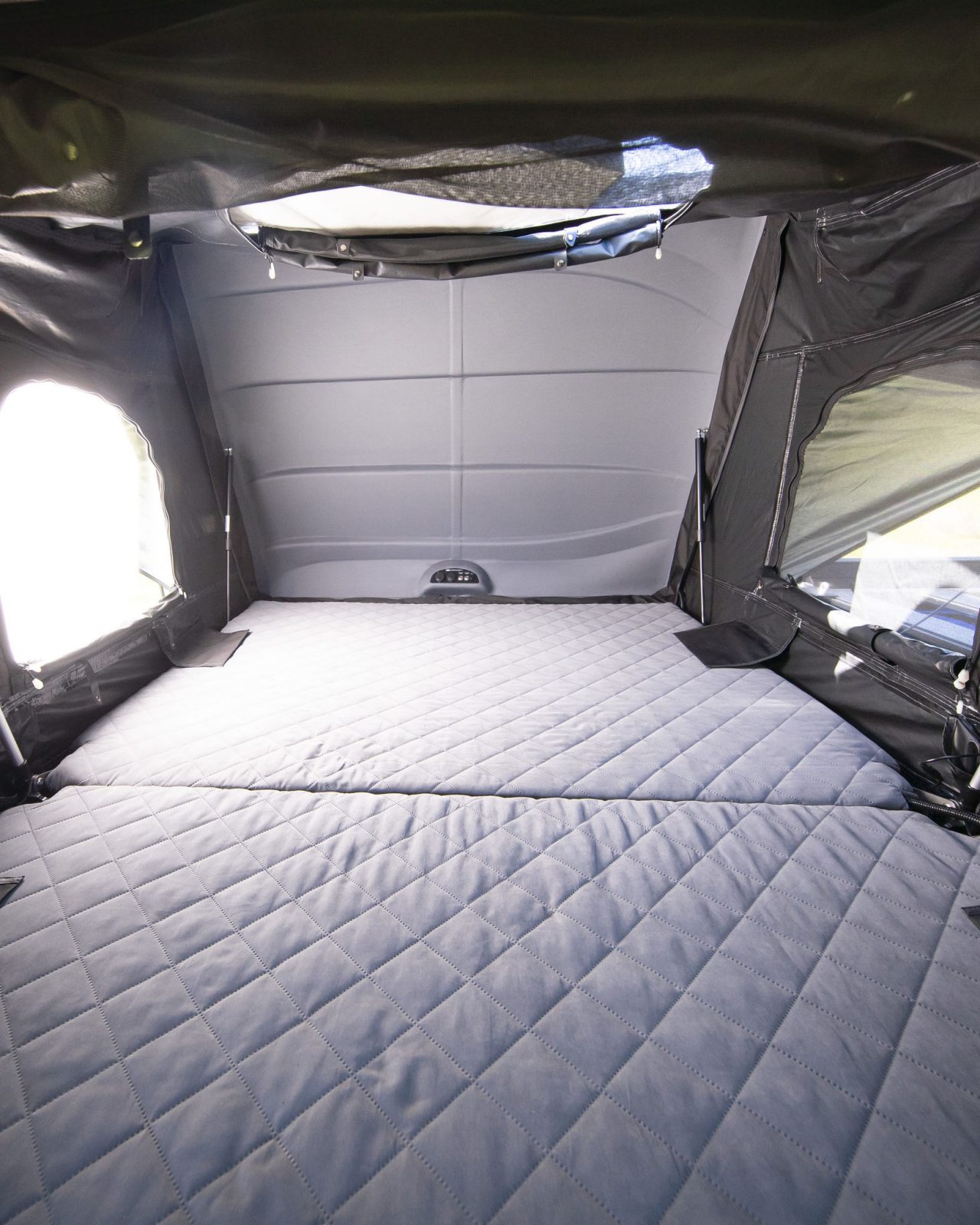 Internal 12V electrics—Electrical control box moulded on inside of shell providing total control at your fingertips. Tent wiring neatly concealed within honeycomb base.