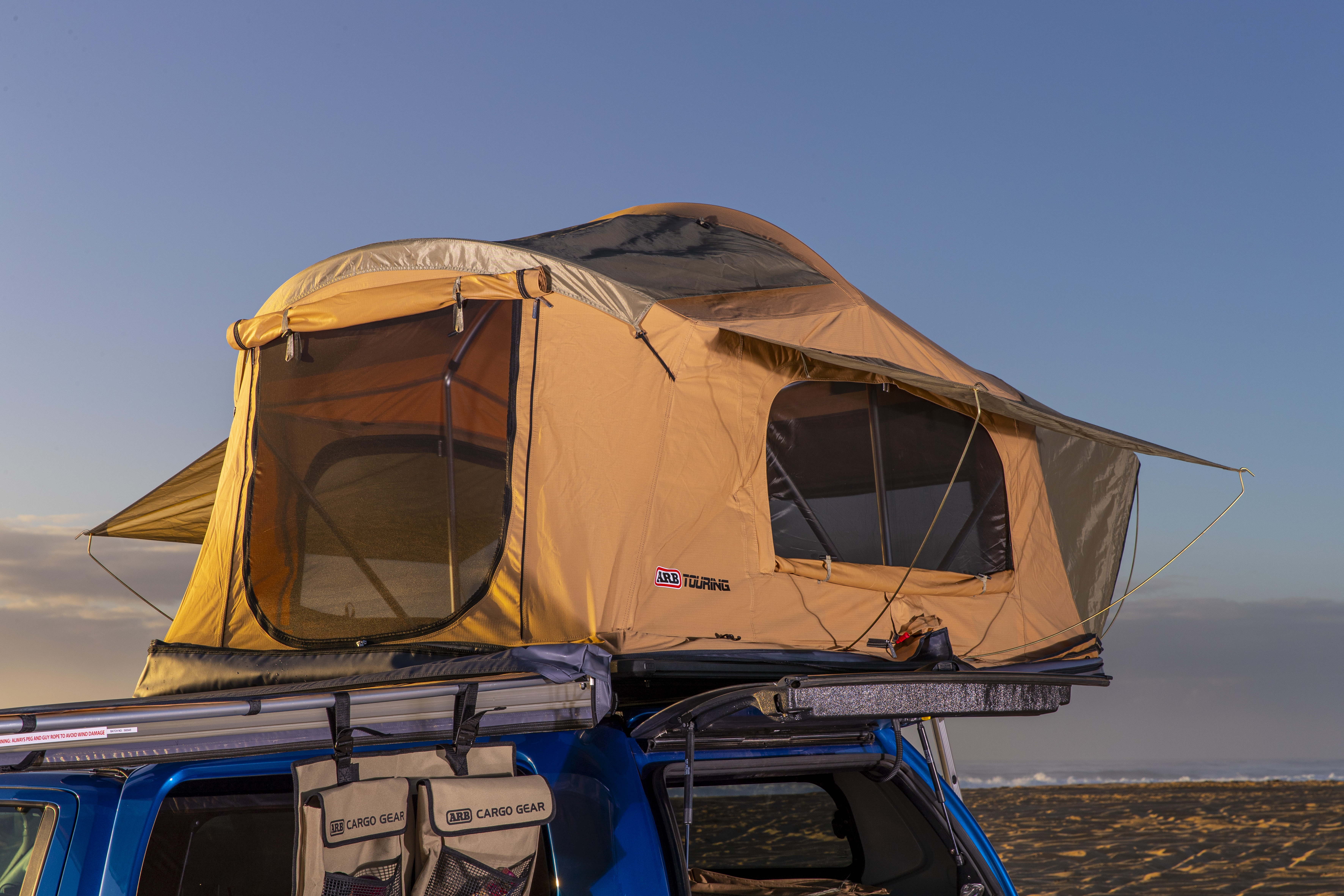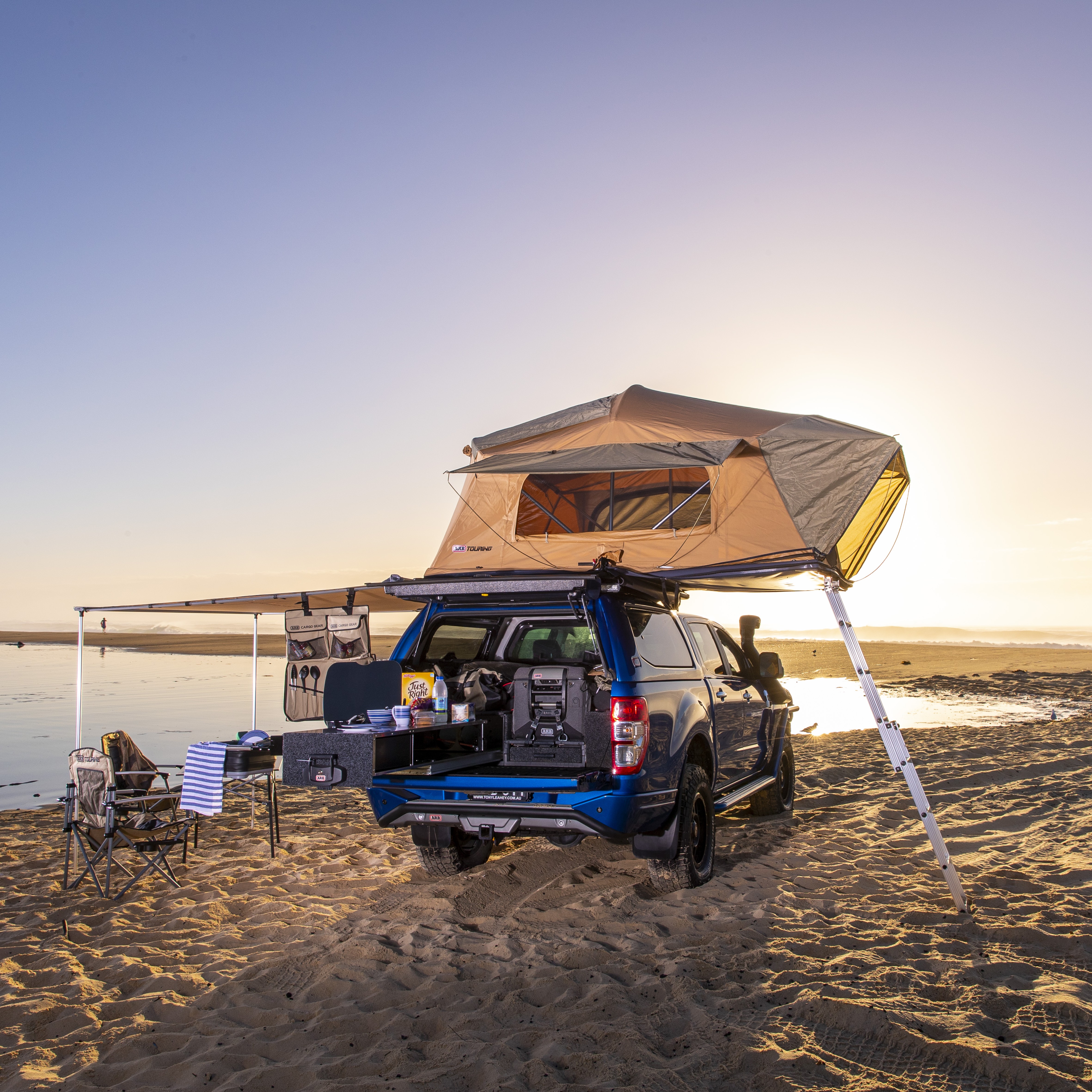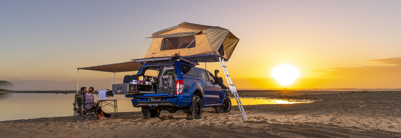The ARB Flinders Rooftop Tent is designed for the modern tourer, combining a spacious interior with a significantly lower packed-down profile, enhancing aerodynamics and access to low-clearance tracks without compromising comfort. Engineered with convenience in mind, its innovative design ensures a fast setup where the cover remains attached and internal 25mm anodized aluminium poles fan out sequentially, making camp quick and easy. This complete kit includes a high-quality ladder (supplied in a separate carton to the tent) and a dedicated light kit, ensuring you are fully equipped for your next adventure.