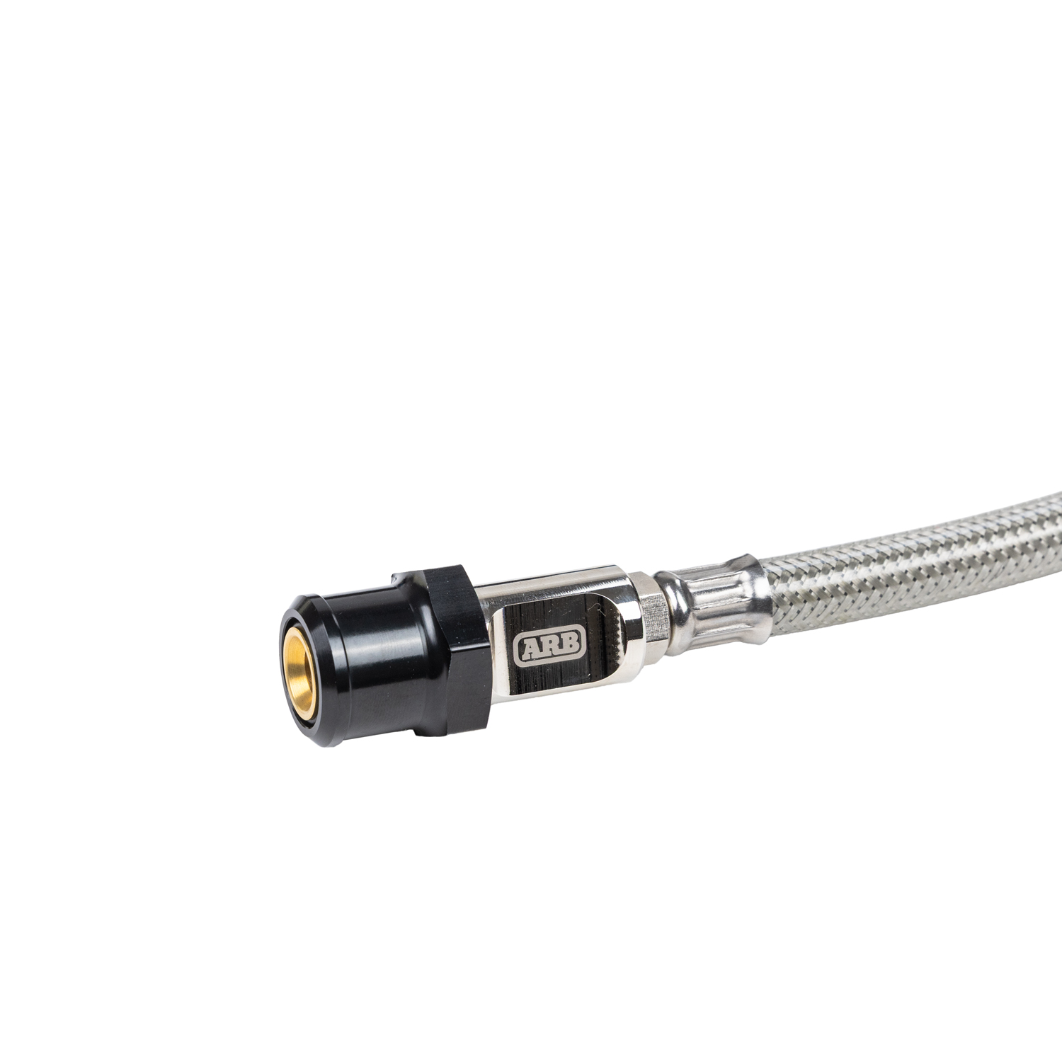 The ARB designed inflation chuck features a nickel-plated brass body for a durable, corrosion-resistant finish designed to withstand harsh environments. A braided stainless steel hose reinforcement adds strength, flexibility, and abrasion resistance. Its high-flow design allows efficient air transfer for faster inflation times, while the push-on connection securely attaches to the tyre valve stem. Precision-machined ARB fittings ensure compatibility with ARB air hoses and accessories, and brass internal components offer reliable sealing. The ergonomically shaped body makes it easy to grip and operate.